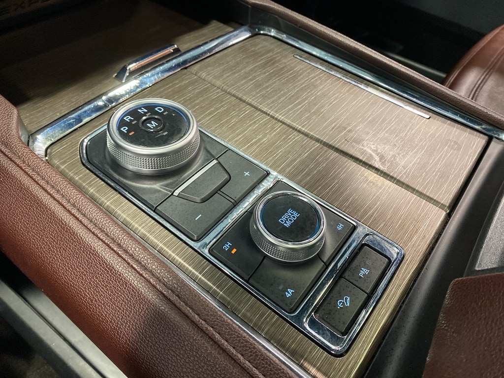 - Simulated wood/metal-look center console trim