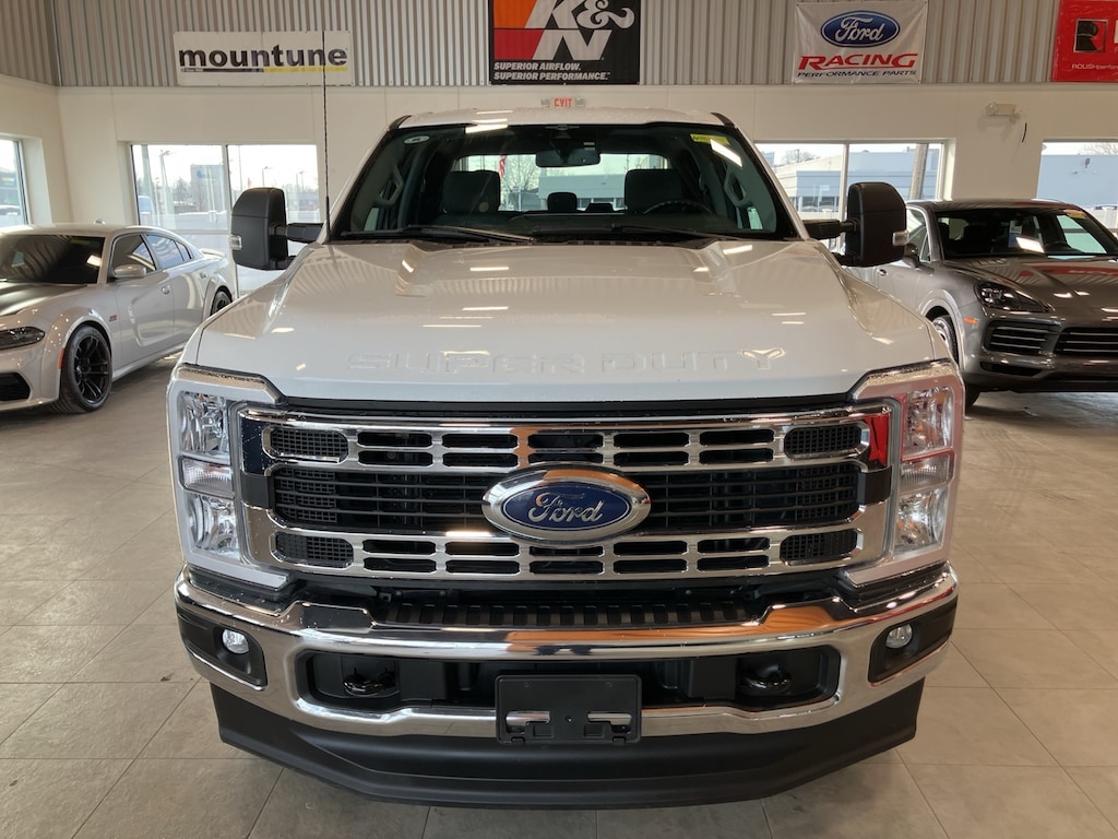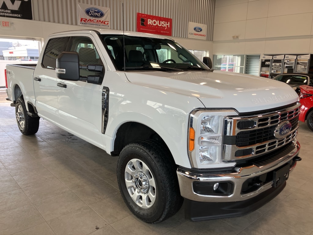 Certified. White Clean CARFAX. 2023 Ford F-250SD XLT 4WD 10-Speed Automatic 7.3L V8 PFI OHV 16V Federal 430hp 4WD, ABS brakes, Alloy wheels, Compass, Electronic Stability Control, Heated door mirrors, Illuminated entry, Low tire pressure warning, Remote keyless entry, Traction control.