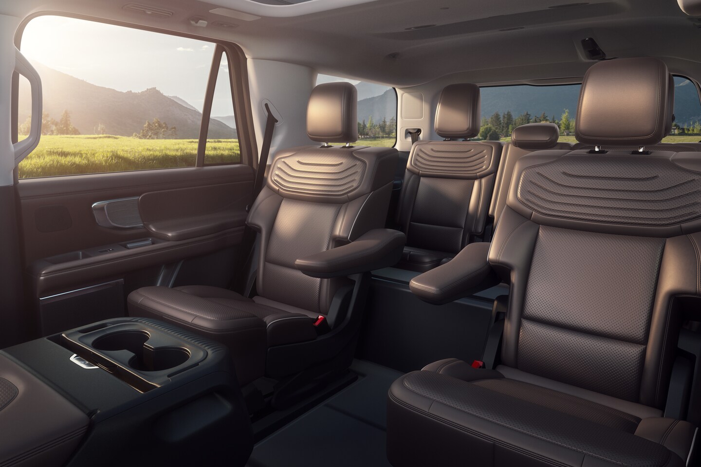 The Ford Expedition's cavernous cabin has premium materials and thoughtful amenities. Up to eight passengers can stretch out in three rows of comfortable seating, with optional power-folding second and third rows for plenty of cargo space. Refined amenities, like available leather upholstery, tri-zone automatic climate control, and ambient lighting, create a luxurious driving environment. Drivers of all sorts will appreciate the Expedition's powerful center console, complete with a wireless charger and ample storage for all their gear.