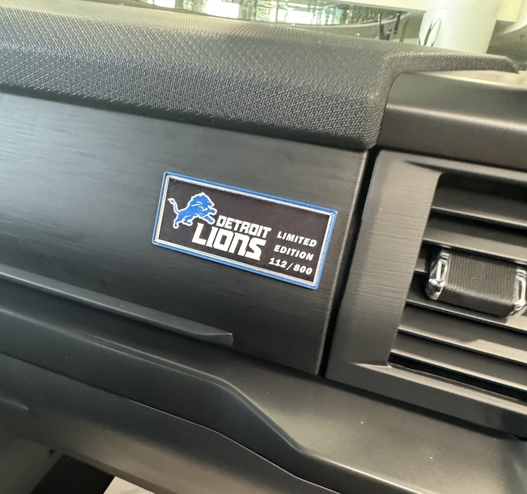 When stepping into the new F-150 Detroit Lions Special Edition, you will find the custom Lions features continue. The F-150 Detroit Lions Special Edition includes custom embroidered headrests for a premium look and a celebration of team pride to display to your passengers. You will also find an interior badge that indicates its build number as one of 800 special edition models.