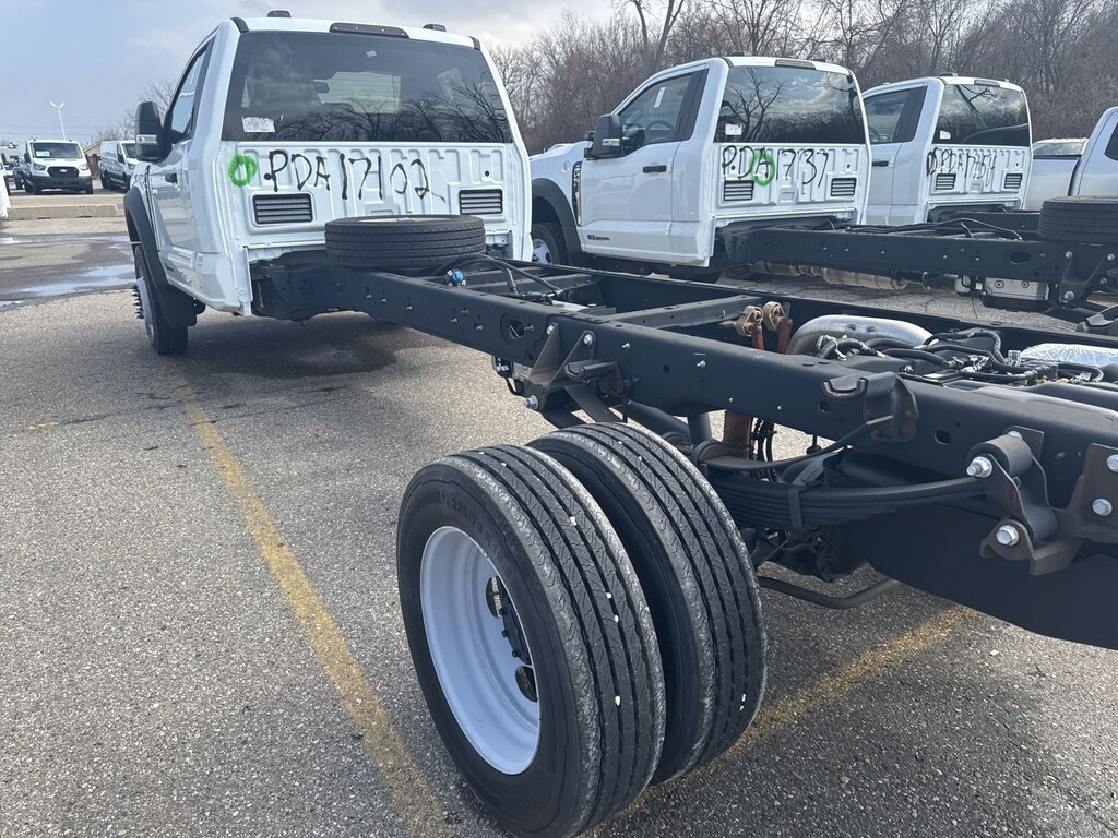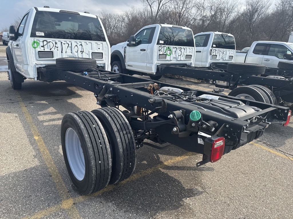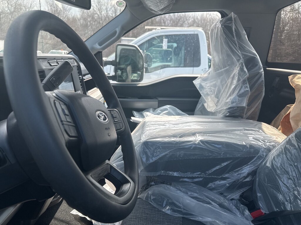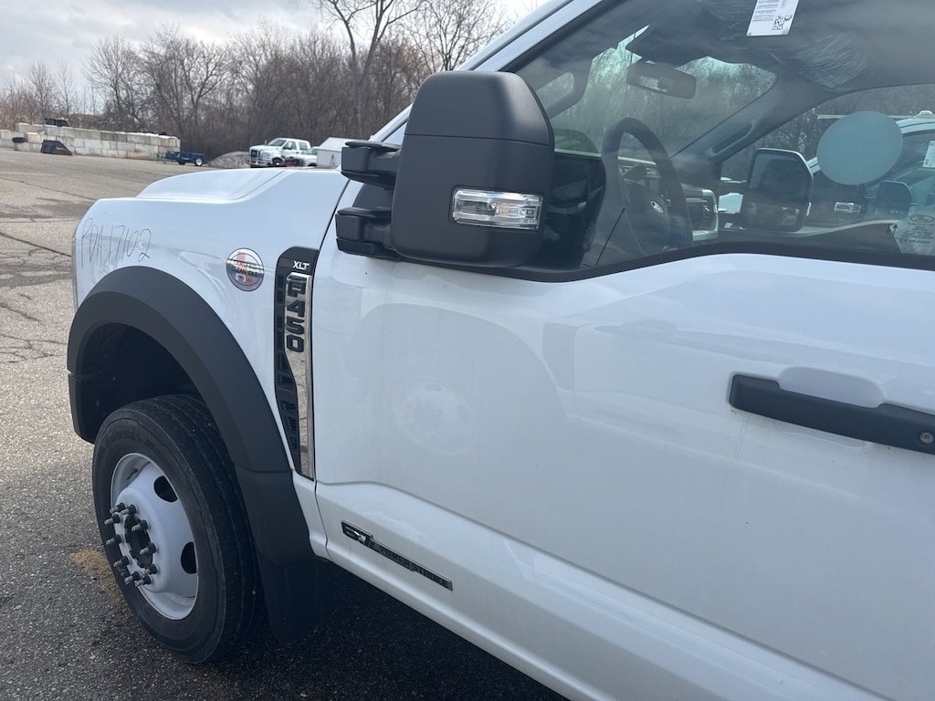 F-450 SuperDuty XLT is nicely equipped with GVWR: 16,500 lb Payload Package, Low Deflection Package, Order Code 653A, XLT Value Package (8-Way Power Driver's Seat, Autolock/Auto Unlock, Electrochromic Rear-View Mirror, Halogen Fog Lamps, Power Adjustable Pedals, Rear Window Defroster, Remote Start, and SecuriCode Driver's Side Keyless Entry Keypad), 350 Amp Dual Alternators, 4 Speakers, 4-Wheel Disc Brakes, 6-Ton Hydraulic Jack, ABS brakes, Air Conditioning, AM/FM radio, AM/FM Stereo w/MP3 Player, Brake assist, Bumpers: chrome, Cloth 40/20/40 Split Bench Seat, Compass, Delay-off headlights, Driver door bin, Driver vanity mirror, Dual front impact airbags, Dual front side impact airbags, Dual rear wheels, Emergency communication system: SYNC 4 911 Assist, Engine Block Heater, Ford Pro Upfit Integration System Removal, Front anti-roll bar, Front Center Armrest w/Storage, Front License Plate Bracket, Front reading lights, Fully automatic headlights, Heated door mirrors, Illuminated entry, Outside temperature display, Overhead airbag, Overhead console, Panic alarm, Passenger cancellable airbag, Passenger door bin, Passenger vanity mirror, Power door mirrors, Power steering, Power windows, Rear anti-roll bar, Remote keyless entry, Speed control, Steering wheel mounted audio controls, SYNC 4 Communications & Entertainment System, Tachometer, Telescoping steering wheel, Tilt steering wheel, Traction control, Trip computer, Turn signal indicator mirrors, Variably intermittent wipers, and Wheels: 19.5" x 6" Argent Painted Steel.