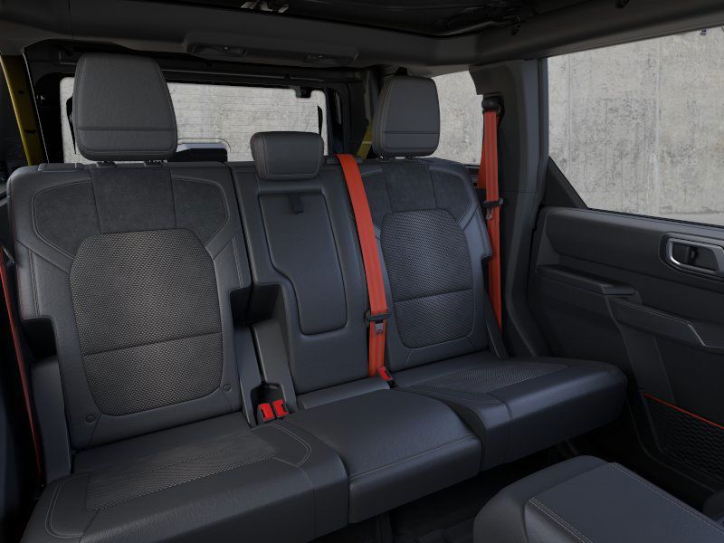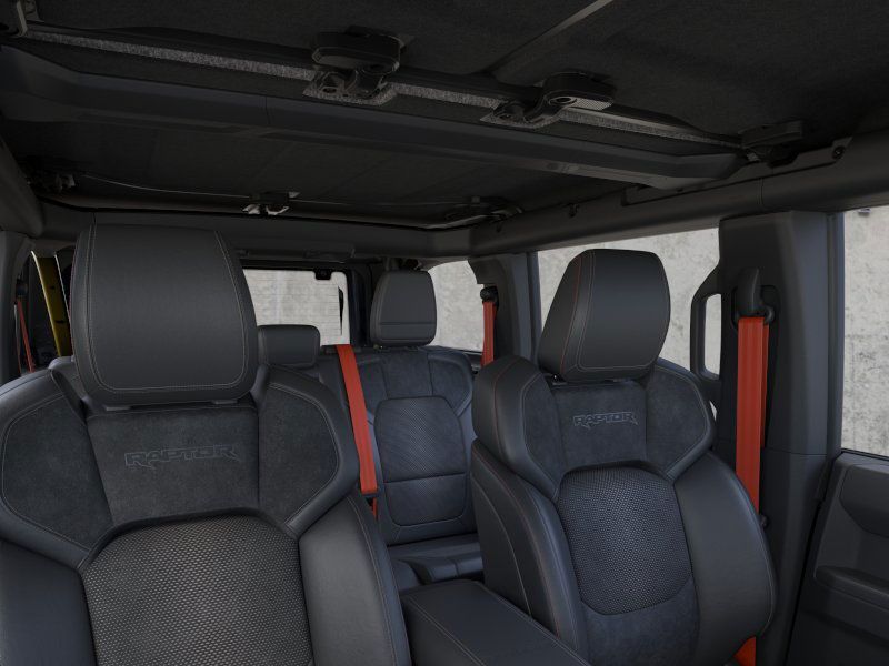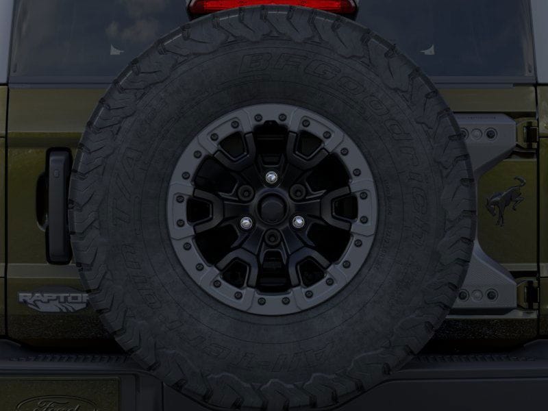Bronco Raptor is nicely equipped with Equipment Group 374A Lux Package, 12 Speakers, 4-Wheel Disc Brakes, ABS brakes, Air Conditioning, Alloy wheels, AM/FM radio: SiriusXM with 360L, Auto High-beam Headlights, Auto-dimming Rear-View mirror, Automatic temperature control, Brake assist, Code Orange Accent Seat Belts, Compass, Connected Navigation, Convertible HardTop, Convertible roof lining, Delay-off headlights, Driver door bin, Driver vanity mirror, Dual front impact airbags, Dual front side impact airbags, Electronic Stability Control, Emergency communication system: 911 Assist, Exterior Parking Camera Rear, Front anti-roll bar, Front Bucket Seats, Front Center Armrest, Front dual zone A/C, Front fog lights, Front reading lights, Front wheel independent suspension, Fully automatic headlights, Garage door transmitter, Glass rear window, Heated door mirrors, Heated front seats, Heated steering wheel, Illuminated entry, Integrated roll-over protection, Leather Shift Knob, Leather-Trimmed/Vinyl Bucket Seats, Low tire pressure warning, Marine Grade Vinyl Bucket Seats, Navigation system: Connected Navigation, Occupant sensing airbag, Outside temperature display, Overhead airbag, Overhead console, Panic alarm, Passenger door bin, Passenger vanity mirror, Power door mirrors, Power steering, Power windows, Radio data system, Radio: B&O Sound System by Bang & Olufsen, Raptor Graphic, Rear anti-roll bar, Rear seat center armrest, Rear window defroster, Rear window wiper, Remote keyless entry, Security system, SiriusXM w/360L, Speed control, Split folding rear seat, Steering wheel mounted audio controls, SYNC 4, Tachometer, Telescoping steering wheel, Tilt steering wheel, Traction control, Trip computer, Turn signal indicator mirrors, Variably intermittent wipers, Voltmeter, Wheels: 17" Black High Gloss-Painted Aluminum, and Wheels: 17" Dark Carbonized Gray Alloy Painted.