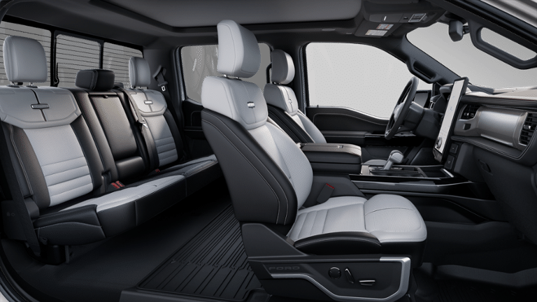 F-150 Lightning Platinum is nicely equipped with Equipment Group 710A Standard, 14 Speakers, 4-Wheel Disc Brakes, ABS brakes, Adjustable pedals, Air Conditioning, Alloy wheels, Auto High-beam Headlights, Auto tilt-away steering wheel, Auto-dimming door mirrors, Auto-dimming Rear-View mirror, Automatic temperature control, Brake assist, Bumpers: body-color, Compass, Delay-off headlights, Driver door bin, Driver vanity mirror, Dual front impact airbags, Dual front side impact airbags, Electronic Stability Control, Emergency communication system: SYNC 4 911 Assist, Four wheel independent suspension, Front anti-roll bar, Front Bucket Seats, Front Center Armrest, Front dual zone A/C, Front reading lights, Fully automatic headlights, Heated door mirrors, Heated front seats, Heated rear seats, Heated steering wheel, Illuminated entry, Illuminated running boards, Knee airbag, Low tire pressure warning, Memory seat, Mobile Power Cord (120/240V), Navigation system: Connected Navigation, Occupant sensing airbag, Outside temperature display, Overhead airbag, Overhead console, Panic alarm, Passenger door bin, Passenger vanity mirror, Pedal memory, Power Deployable Running Boards w/Black Accent, Power door mirrors, Power driver seat, Power moonroof, Power passenger seat, Power steering, Power windows, Premium Nirvana Leather Bucket Seats, Radio data system, Radio: B&O Unleashed Sound System by Bang & Olufsen, Rain sensing wipers, Rear anti-roll bar, Rear reading lights, Rear seat center armrest, Rear step bumper, Rear window defroster, Remote keyless entry, Retractable Tonneau Pickup Box Cover, Security system, Speed control, Speed-sensing steering, Split folding rear seat, Steering wheel memory, Steering wheel mounted audio controls, SYNC 4A w/Enhanced Voice Recognition, Telescoping steering wheel, Tilt steering wheel, Tough Bed Spray-In Bedliner, Traction control, Tray Style Floor Liner, Trip computer, Turn signal indicator mirrors, Variably intermittent wipers, Ventilated front seats, and Wheels: 22" Bright Machined w/Ebony Black. See dealer for details. Price may include Ford Employee discount. Price does not include licensing costs, registration fees, taxes and dealer doc fee of $280, which are to be paid by the consumer.$1000 - Retail Bonus Cash. Exp. 04/30/2026 $2000 - EV Public Charging Credit(FPP Alt.). Exp. 07/06/2026 $5000 - Retail Customer Cash. Exp. 04/30/2026 $750 - 2026 College Student Recognition Exclusive Cash Reward Pgm. Exp. 01/04/2027