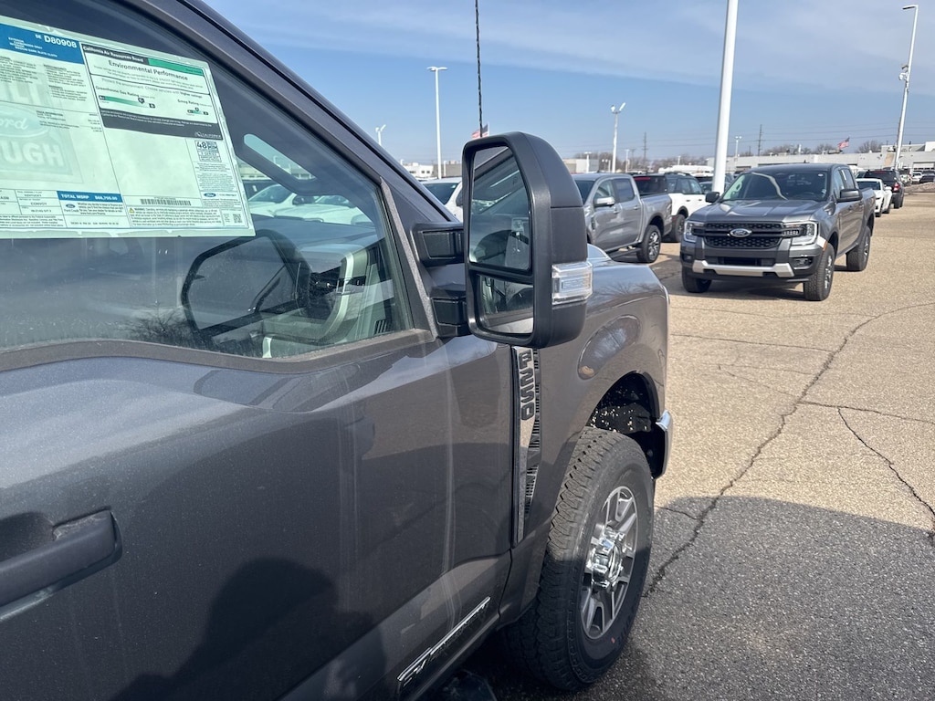 F-250 SuperDuty XLT is nicely equipped with F-250 >10K GVWR Package, FX4 Off-Road Package (Hill Descent Control, Off-Road Specifically Tuned Shock Absorbers, and Unique FX4 Off-Road Box Decal), GVWR: 10,000 lb Payload Package, 4WD, 4-Wheel Disc Brakes, 6 Speakers, ABS brakes, Air Conditioning, AM/FM radio, AM/FM Stereo w/MP3 Player, Brake assist, Cloth 40/20/40 Split Bench Seat, Compass, Delay-off headlights, Dual AGM 68 AH Battery, Dual front impact airbags, Dual front side impact airbags, Electronic Stability Control, Emergency communication system: SYNC 4 911 Assist, Exterior Parking Camera Rear, Front anti-roll bar, Front Center Armrest w/Storage, Front reading lights, Fully automatic headlights, Heated door mirrors, Illuminated entry, Internet access capable: FordPass Connect 5G, Low tire pressure warning, Outside temperature display, Overhead airbag, Overhead console, Panic alarm, Passenger cancellable airbag, Passenger vanity mirror, Platform Running Boards, Power door mirrors, Power steering, Power windows, Privacy Glass, Rear step bumper, Remote keyless entry, Security system, Speed control, Split folding rear seat, Steering wheel mounted audio controls, SYNC 4, Tachometer, Telescoping steering wheel, Tilt steering wheel, Traction control, Trip computer, Turn signal indicator mirrors, Upfitter Switches (6), and Variably intermittent wipers. See dealer for details. Price may include Ford Employee discount. Price does not include licensing costs, registration fees, taxes and dealer doc fee of $280, which are to be paid by the consumer.$5500 - Retail Customer Cash. Exp. 04/30/2026