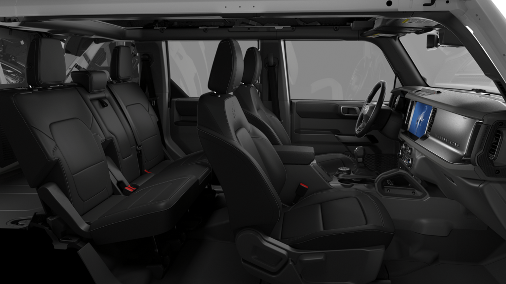 Bronco Outer Banks Advanced is nicely equipped with Equipment Group 314A Lux Package (18" Bright Machined Aluminum Wheels, 360-Degree Camera, Adaptive Cruise Control, Evasive Steering Assist, Front Parking Sensors, Heated Leather-Trimmed/Vinyl Bucket Seats, Information on Demand Panel, and Sideview Mirrors), Ford Connectivity Package (1-Year Included), Sasquatch Package (High Clearance Fender Flares, High Clearance Suspension, Position-Sensitive Bilstein Shock Absorbers, and Wheels: 17" Matte Black Alloy), 4-Wheel Disc Brakes, 7 Speakers, ABS brakes, Air Conditioning, Alloy wheels, AM/FM radio: SiriusXM with 360L, AM/FM Stereo, Auto High-beam Headlights, Auto-dimming Rear-View mirror, Automatic temperature control, Brake assist, Compass, Connected Navigation, Delay-off headlights, Driver door bin, Driver vanity mirror, Dual front impact airbags, Dual front side impact airbags, Electronic Stability Control, Emergency communication system: 911 Assist, Engine Block Heater, Exterior Parking Camera Rear, Front anti-roll bar, Front Bucket Seats, Front Center Armrest, Front dual zone A/C, Front fog lights, Front reading lights, Front wheel independent suspension, Fully automatic headlights, Heated door mirrors, Heated front seats, Heated steering wheel, Illuminated entry, Integrated roll-over protection, Leather Shift Knob, Low tire pressure warning, Navigation system: Connected Navigation, Occupant sensing airbag, Outside temperature display, Overhead airbag, Overhead console, Panic alarm, Passenger door bin, Passenger vanity mirror, Power door mirrors, Power driver seat, Power passenger seat, Power steering, Power windows, Radio data system, Rear seat center armrest, Remote keyless entry, Security system, SiriusXM with 360L, Speed control, Split folding rear seat, Steering wheel mounted audio controls, SYNC 4, Tachometer, Telescoping steering wheel, Tilt steering wheel, Traction control, Trip computer, Variably intermittent wipers, and Voltmeter.
