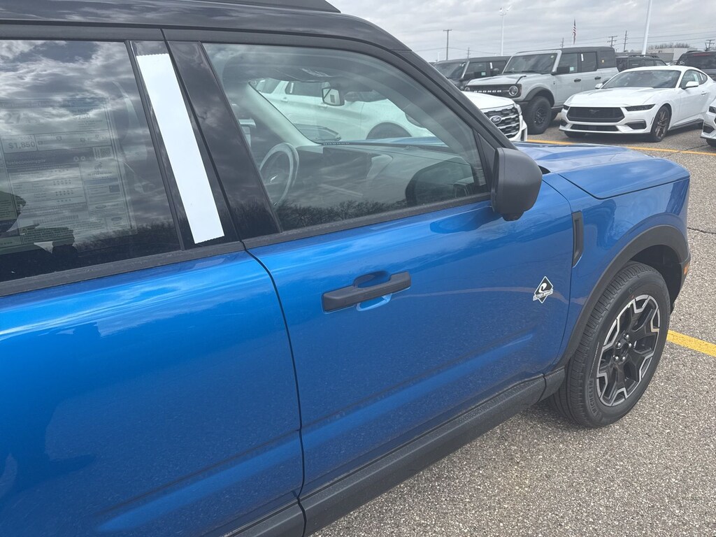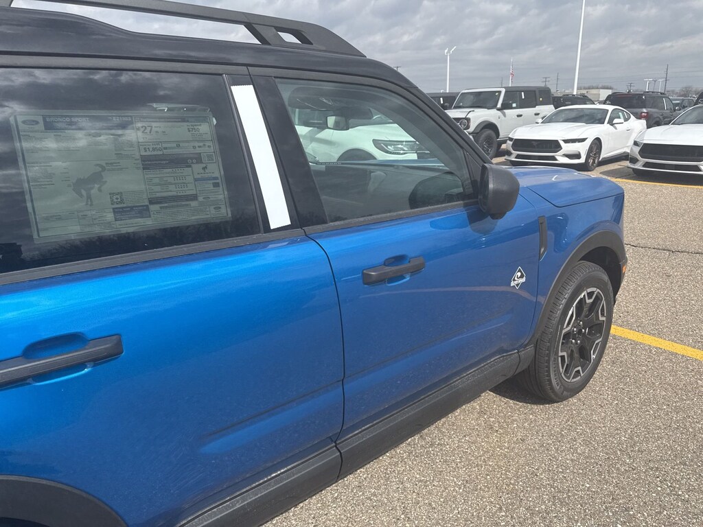 Bronco Sport Outer Banks is nicely equipped with Equipment Group 300A Standard Package (AM/FM Stereo, Front Driver/Passenger Seat Back Map Pockets, SiriusXM with 360L, SYNC 4 with Enhanced Voice Recognition, and Wheels: 18" Ebony Black), Ford Connectivity Package (1-Year Included), Internet access capable: 5G Modem - Ford Connectivity Package, Outer Banks Tech Package+ (Connected Navigation (1-Year Included) and Radio: HD w/B&O Sound System by Bang & Olufsen), 360-Degree Camera with Trail View, 4-Wheel Disc Brakes, 6 Speakers, ABS brakes, Air Conditioning, Alloy wheels, AM/FM radio: SiriusXM with 360L, Apple CarPlay/Android Auto, Auto High-beam Headlights, Auto-dimming Rear-View mirror, Automatic temperature control, Brake assist, Compass, Delay-off headlights, Driver door bin, Driver vanity mirror, Dual front impact airbags, Dual front side impact airbags, Electronic Stability Control, Emergency communication system: SYNC 4 911 Assist, Exterior Parking Camera Rear, Four wheel independent suspension, Front anti-roll bar, Front Bucket Seats, Front Center Armrest, Front dual zone A/C, Front fog lights, Front Parking Sensors, Front reading lights, Fully automatic headlights, Heated door mirrors, Heated front seats, Heated steering wheel, Illuminated entry, Knee airbag, Low tire pressure warning, Memory seat, Occupant sensing airbag, Outside temperature display, Overhead airbag, Overhead console, Panic alarm, Passenger door bin, Passenger vanity mirror, Power door mirrors, Power driver seat, Power passenger seat, Power steering, Power windows, Radio data system, Rear anti-roll bar, Rear Parking Sensors, Rear reading lights, Rear seat center armrest, Rear window defroster, Rear window wiper, Remote keyless entry, Reverse Brake Assist, Security system, Speed control, Speed-sensing steering, Speed-Sensitive Wipers, Split folding rear seat, Steering wheel mounted audio controls, Tachometer, Telescoping steering wheel, Tilt steering wheel, Traction control, Trip computer, and Variably intermittent wipers. See dealer for details. Price may include Ford Employee discount. Price does not include licensing costs, registration fees, taxes and dealer doc fee of $280, which are to be paid by the consumer.$250 - Retail Customer Cash. Exp. 04/30/2026