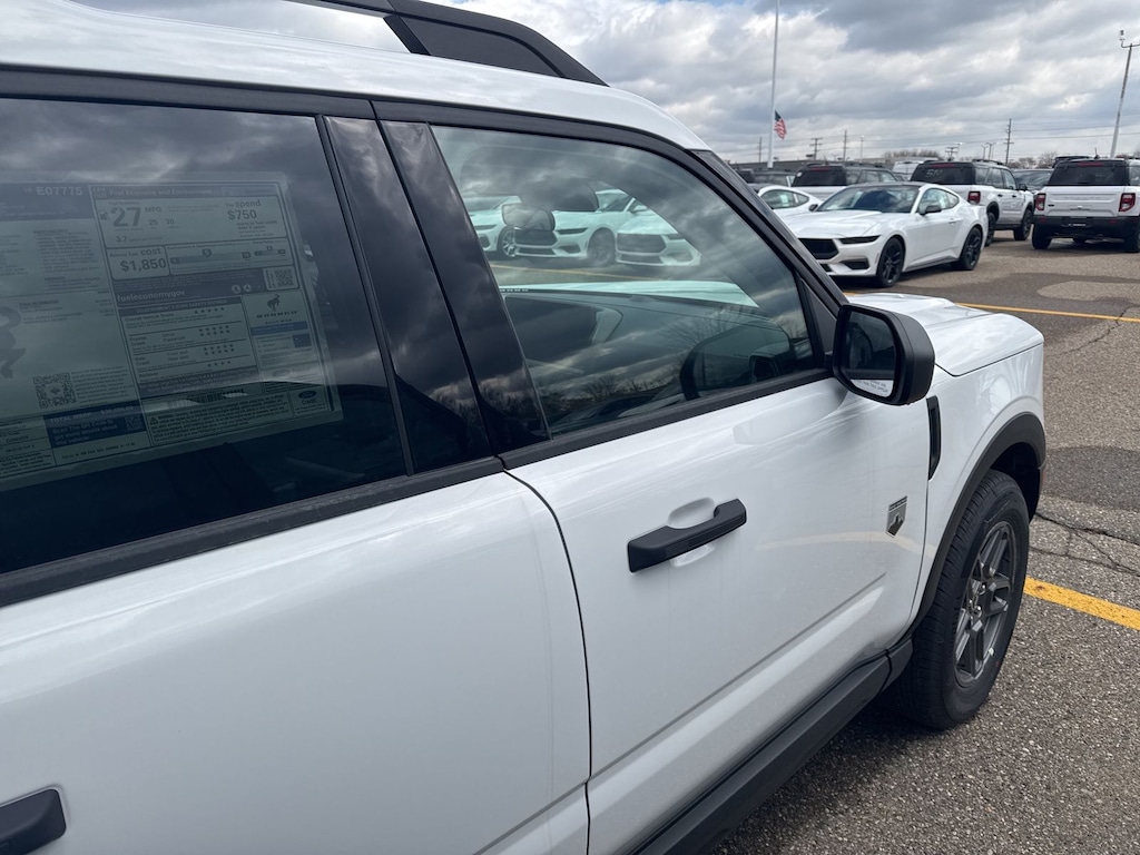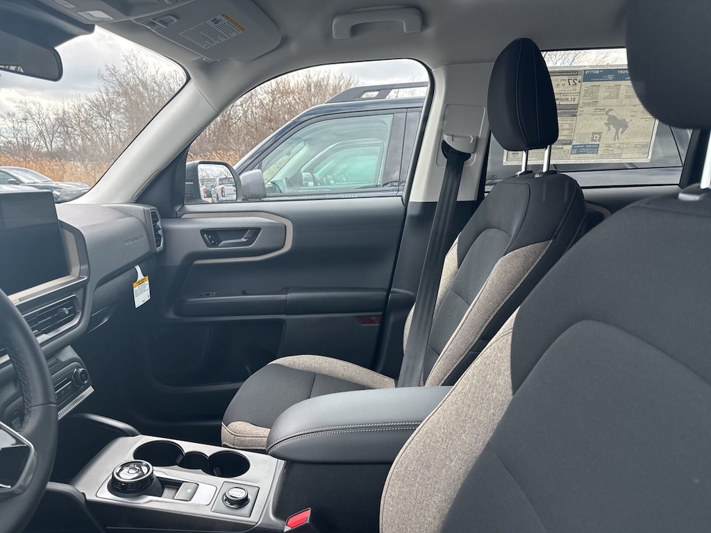 Bronco Sport Big Bend is nicely equipped with Convenience Package (Front Driver/Passenger Seat Back Map Pockets, Heated 8-Way Power Driver's Seat, LED Fog Lamps, and Premium Wrapped Steering Wheel), Equipment Group 200A Standard Package (AM/FM Stereo, Cloth with Easy-to-Clean Front Bucket Seats, SiriusXM with 360L, SYNC 4 with Enhanced Voice Recognition, and Wheels: 17" Carbonized Gray Painted Aluminum), Ford Connectivity Package (1-Year Included), Internet access capable: 5G Modem - Ford Connectivity Package, 4-Wheel Disc Brakes, 6 Speakers, ABS brakes, Air Conditioning, Alloy wheels, AM/FM radio: SiriusXM with 360L, Apple CarPlay/Android Auto, Auto High-beam Headlights, Automatic temperature control, Brake assist, Compass, Delay-off headlights, Driver door bin, Driver vanity mirror, Dual front impact airbags, Dual front side impact airbags, Electronic Stability Control, Emergency communication system: SYNC 4 911 Assist, Exterior Parking Camera Rear, Four wheel independent suspension, Front anti-roll bar, Front Bucket Seats, Front Center Armrest, Front reading lights, Fully automatic headlights, Heated door mirrors, Illuminated entry, Knee airbag, Liftgate with Black BRONCO SPORT Lettering, Low tire pressure warning, Occupant sensing airbag, Outside temperature display, Overhead airbag, Overhead console, Panic alarm, Passenger door bin, Passenger vanity mirror, Power door mirrors, Power steering, Power windows, Radio data system, Rear anti-roll bar, Rear Parking Sensors, Rear reading lights, Rear seat center armrest, Rear window defroster, Rear window wiper, Remote keyless entry, Security system, Speed control, Speed-sensing steering, Speed-Sensitive Wipers, Split folding rear seat, Steering wheel mounted audio controls, Tachometer, Telescoping steering wheel, Tilt steering wheel, Traction control, Trip computer, and Variably intermittent wipers. See dealer for details. Price may include Ford Employee discount. Price does not include licensing costs, registration fees, taxes and dealer doc fee of $280, which are to be paid by the consumer.$250 - Retail Customer Cash. Exp. 04/30/2026
