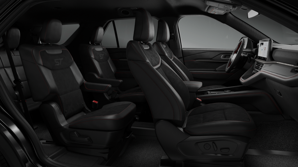 Explorer ST is nicely equipped with Equipment Group 400A Standard Package (Heated/Ventilated Miko Suede Captain's Chairs, Radio: B&O Sound System by Bang and Olufsen, and Wheels: 21" Magnetite-Painted Aluminum), Sun and Sound Package (Multicontour Seats with Front Active Motion, Panoramic Fixed Glass Roof with Power Shade, Radio: B&O Sound System by Bang & Olufsen, and Remote Control Front Windows), 4WD, 10 Speakers, 3rd row seats: bench, 4-Wheel Disc Brakes, ABS brakes, Air Conditioning, Alloy wheels, AM/FM radio: SiriusXM with 360L, Apple CarPlay/Android Auto, Auto High-beam Headlights, Auto-dimming door mirrors, Auto-dimming Rear-View mirror, Automatic temperature control, BlueCruise Equipped (1-Year + 90-Day Plan), Brake assist, Bumpers: body-color, Compass, Delay-off headlights, Driver door bin, Driver vanity mirror, Dual front impact airbags, Dual front side impact airbags, Electronic Stability Control, Emergency communication system: 911 Assist, Exterior Parking Camera Rear, Four wheel independent suspension, Front and 2nd Rows Floor Liners with Carper Floor Mats, Front anti-roll bar, Front Bucket Seats, Front Center Armrest, Front dual zone A/C, Front fog lights, Front reading lights, Fully automatic headlights, Garage door transmitter, Heated door mirrors, Heated front seats, Heated rear seats, Heated steering wheel, Illuminated entry, Knee airbag, Leather steering wheel, Low tire pressure warning, Memory seat, Navigation System, Occupant sensing airbag, Outside temperature display, Overhead airbag, Overhead console, Panic alarm, Passenger door bin, Passenger vanity mirror, Power door mirrors, Power driver seat, Power Liftgate, Power passenger seat, Power steering, Power windows, Rain sensing wipers, Rear air conditioning, Rear anti-roll bar, Rear reading lights, Rear window defroster, Rear window wiper, Remote keyless entry, SecuriCode Keyless Entry Keypad, Security system, SiriusXM with 360L (3-Year Plan), Speed control, Speed-sensing steering, Speed-Sensitive Wipers, Split folding rear seat, Spoiler, Sport steering wheel, Steering wheel mounted audio controls, Tachometer, Telescoping steering wheel, Tilt steering wheel, Traction control, Trip computer, Turn signal indicator mirrors, Variably intermittent wipers, and Ventilated front seats. See dealer for details. Price may include Ford Employee discount. Price does not include licensing costs, registration fees, taxes and dealer doc fee of $280, which are to be paid by the consumer.$3500 - Retail Customer Cash. Exp. 03/31/2026