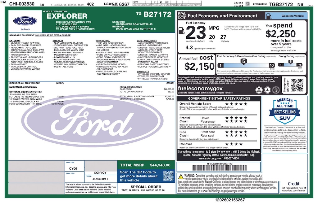 View this 2026 Ford Explorer SUV Active for sale at Suburban Ford of Sterling Heights.