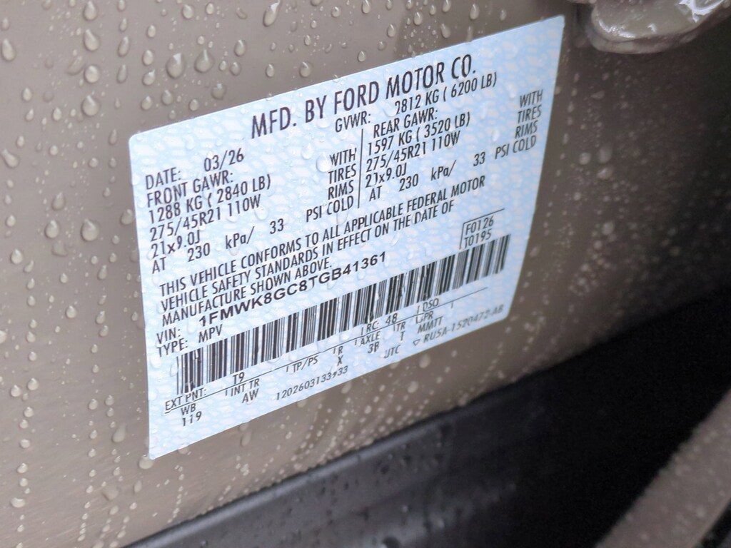 Vin Number: 1FMWK8GC8TGB41361