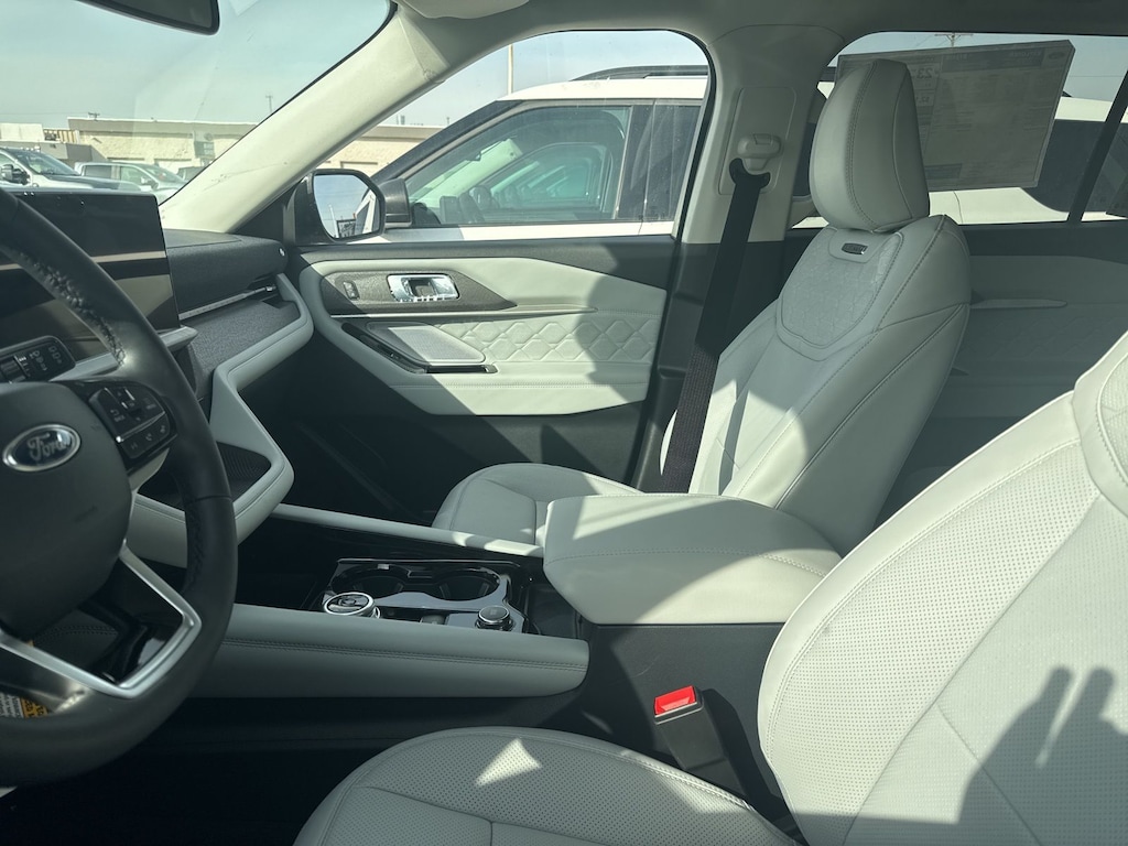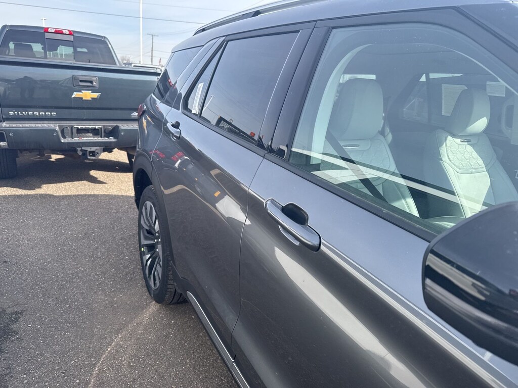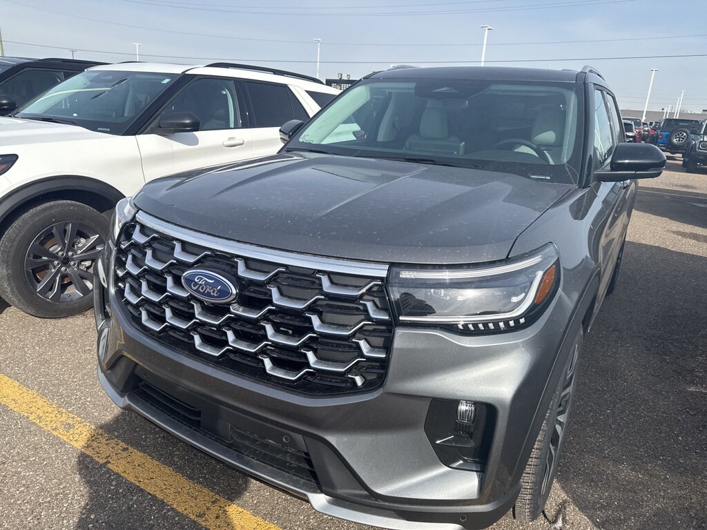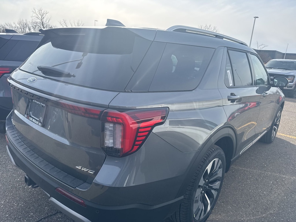 Explorer Platinum is nicely equipped with Equipment Group 600A Standard Package (ActiveX Trimmed Captain's Chairs, Radio: B&O Sound System by Bang & Olufsen with HD, and Wheels: 20" Luster Nickel-Painted Aluminum), Ford Connectivity Package (one-Time Purchase - 7 Years), Lux Leather Package (Platinum Badges on Front Row Seats, Premium Leather Seating Surfaces Captain's Chairs, Quilting and Stitching on Door Panels, and Quilting and Stitching on Seats), 4WD, 14 Speakers, 3rd row seats: bench, 4-Wheel Disc Brakes, ABS brakes, Air Conditioning, Alloy wheels, AM/FM radio: SiriusXM with 360L, Apple CarPlay/Android Auto, Auto High-beam Headlights, Auto-dimming door mirrors, Auto-dimming Rear-View mirror, Automatic temperature control, Brake assist, Bumpers: body-color, Compass, Delay-off headlights, Driver door bin, Driver vanity mirror, Dual front impact airbags, Dual front side impact airbags, Electronic Stability Control, Emergency communication system: 911 Assist, Exterior Parking Camera Rear, Four wheel independent suspension, Front and 2nd Rows Floor Liners with Carper Floor Mats, Front anti-roll bar, Front Bucket Seats, Front Center Armrest, Front dual zone A/C, Front fog lights, Front reading lights, Fully automatic headlights, Garage door transmitter, Heated door mirrors, Heated front seats, Heated rear seats, Heated steering wheel, Illuminated entry, Knee airbag, Leather steering wheel, Low tire pressure warning, Memory seat, Navigation System, Occupant sensing airbag, Outside temperature display, Overhead airbag, Overhead console, Panic alarm, Panoramic Fixed Glass Roof with Power Shade, Passenger door bin, Passenger vanity mirror, Power door mirrors, Power driver seat, Power Liftgate, Power passenger seat, Power steering, Power windows, Radio data system, Rain sensing wipers, Rear air conditioning, Rear anti-roll bar, Rear reading lights, Rear window defroster, Rear window wiper, Remote keyless entry, SecuriCode Keyless Entry Keypad, Security system, Speed control, Speed-sensing steering, Speed-Sensitive Wipers, Split folding rear seat, Spoiler, Steering wheel mounted audio controls, Tachometer, Telescoping steering wheel, Tilt steering wheel, Traction control, Trip computer, Turn signal indicator mirrors, Variably intermittent wipers, Ventilated front seats, and Wheels: : 21" Bright Machined Aluminum w/Tarnish Dark Pockets. See dealer for details. Price may include Ford Employee discount. Price does not include licensing costs, registration fees, taxes and dealer doc fee of $280, which are to be paid by the consumer.$3500 - Retail Customer Cash. Exp. 04/30/2026