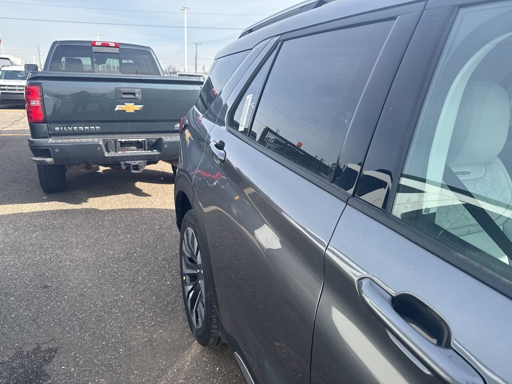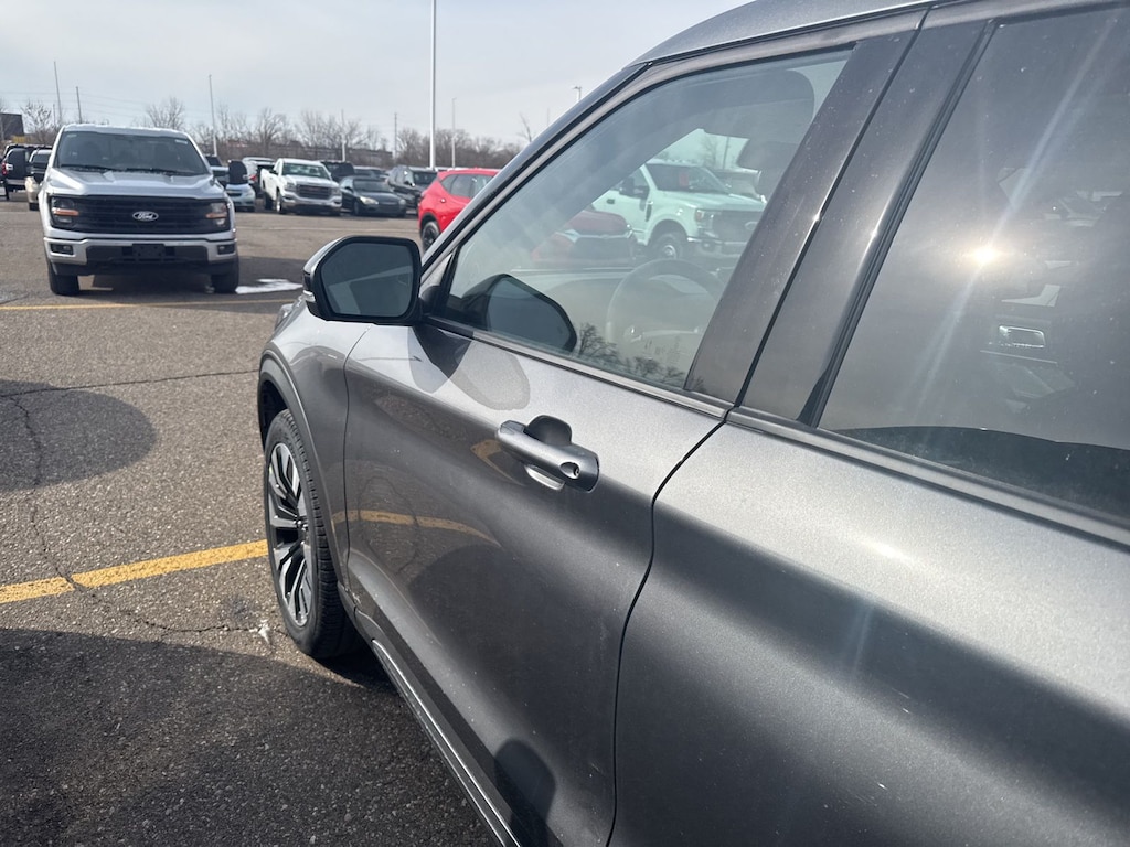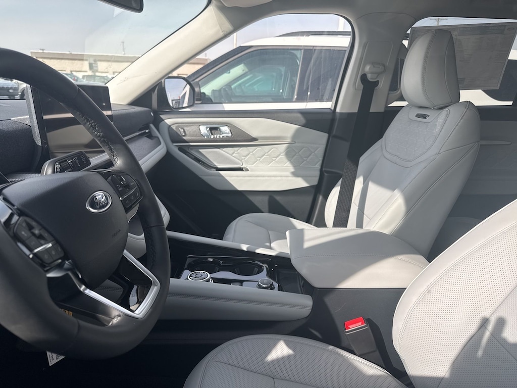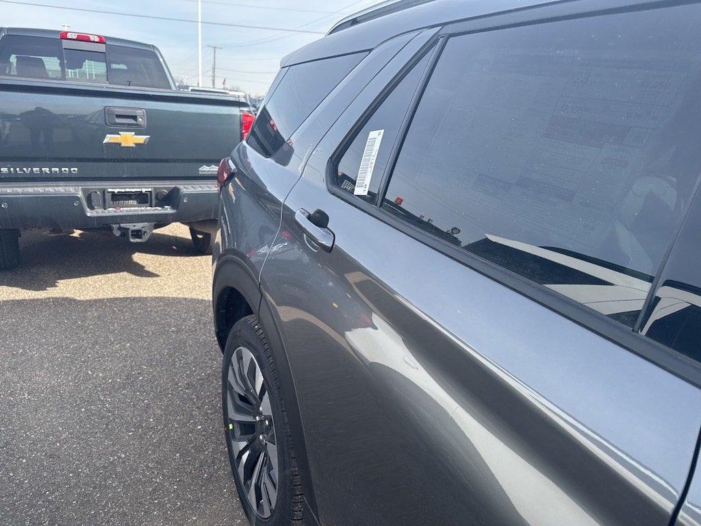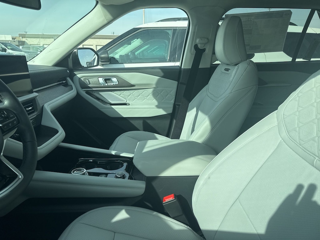 Explorer Platinum is nicely equipped with Equipment Group 600A Standard Package (ActiveX Trimmed Captain's Chairs, Radio: B&O Sound System by Bang & Olufsen with HD, and Wheels: 20" Luster Nickel-Painted Aluminum), Ford Connectivity Package (one-Time Purchase - 7 Years), Lux Leather Package (Platinum Badges on Front Row Seats, Premium Leather Seating Surfaces Captain's Chairs, Quilting and Stitching on Door Panels, and Quilting and Stitching on Seats), 4WD, 14 Speakers, 3rd row seats: bench, 4-Wheel Disc Brakes, ABS brakes, Air Conditioning, Alloy wheels, AM/FM radio: SiriusXM with 360L, Apple CarPlay/Android Auto, Auto High-beam Headlights, Auto-dimming door mirrors, Auto-dimming Rear-View mirror, Automatic temperature control, Brake assist, Bumpers: body-color, Compass, Delay-off headlights, Driver door bin, Driver vanity mirror, Dual front impact airbags, Dual front side impact airbags, Electronic Stability Control, Emergency communication system: 911 Assist, Exterior Parking Camera Rear, Four wheel independent suspension, Front and 2nd Rows Floor Liners with Carper Floor Mats, Front anti-roll bar, Front Bucket Seats, Front Center Armrest, Front dual zone A/C, Front fog lights, Front reading lights, Fully automatic headlights, Garage door transmitter, Heated door mirrors, Heated front seats, Heated rear seats, Heated steering wheel, Illuminated entry, Knee airbag, Leather steering wheel, Low tire pressure warning, Memory seat, Navigation System, Occupant sensing airbag, Outside temperature display, Overhead airbag, Overhead console, Panic alarm, Panoramic Fixed Glass Roof with Power Shade, Passenger door bin, Passenger vanity mirror, Power door mirrors, Power driver seat, Power Liftgate, Power passenger seat, Power steering, Power windows, Radio data system, Rain sensing wipers, Rear air conditioning, Rear anti-roll bar, Rear reading lights, Rear window defroster, Rear window wiper, Remote keyless entry, SecuriCode Keyless Entry Keypad, Security system, Speed control, Speed-sensing steering, Speed-Sensitive Wipers, Split folding rear seat, Spoiler, Steering wheel mounted audio controls, Tachometer, Telescoping steering wheel, Tilt steering wheel, Traction control, Trip computer, Turn signal indicator mirrors, Variably intermittent wipers, Ventilated front seats, and Wheels: : 21" Bright Machined Aluminum w/Tarnish Dark Pockets. See dealer for details. Price may include Ford Employee discount. Price does not include licensing costs, registration fees, taxes and dealer doc fee of $280, which are to be paid by the consumer.$3500 - Retail Customer Cash. Exp. 04/30/2026