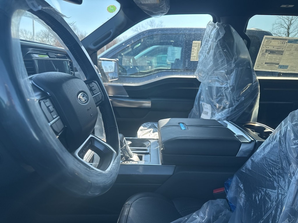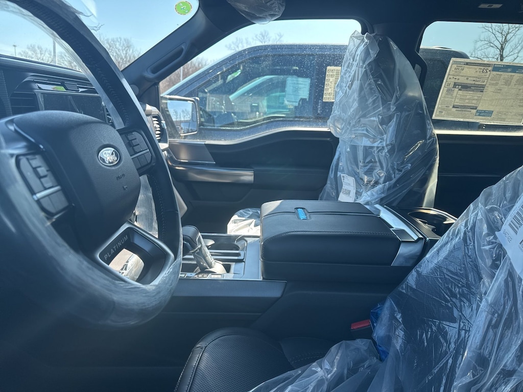 F-150 Platinum is nicely equipped with Equipment Group 702A High (Power-Deployable Running Boards, Radio: B&O Unleashed Sound System by Bang & Olufsen, Unique Multi-Contour Leather Bucket Seats, and Wheels: 20" Painted Gloss Ebony Black), Ford Connectivity Package (1-Year Included), Internet access capable: 5G Modem - Ford Connectivity Package, 3.5L PowerBoost Full-Hybrid V6, 4WD, 4-Wheel Disc Brakes, 8 Speakers, ABS brakes, Adjustable pedals, Air Conditioning, Alloy wheels, AM/FM radio: SiriusXM with 360L, Auto High-beam Headlights, Auto tilt-away steering wheel, Auto-dimming door mirrors, Auto-dimming Rear-View mirror, Automatic temperature control, Brake assist, Bumpers: body-color, Compass, Delay-off headlights, Driver door bin, Driver vanity mirror, Driver's Side SecuriCode Keyless-Entry Keypad, Dual front impact airbags, Dual front side impact airbags, Electronic Stability Control, Emergency communication system: SYNC 4 911 Assist, Front anti-roll bar, Front Bucket Seats, Front Center Armrest, Front dual zone A/C, Front fog lights, Front reading lights, Front wheel independent suspension, Fully automatic headlights, Garage door transmitter, Heated door mirrors, Heated front seats, Heated rear seats, Heated steering wheel, Illuminated entry, Leather steering wheel, Low tire pressure warning, Memory seat, Navigation system: Connected Navigation, Occupant sensing airbag, Outside temperature display, Overhead airbag, Overhead console, Panic alarm, Passenger door bin, Passenger vanity mirror, Pedal memory, Power door mirrors, Power driver seat, Power passenger seat, Power steering, Power windows, Radio data system, Radio: B&O Sound System by Bang and Olufsen, Rain sensing wipers, Rear reading lights, Rear seat center armrest, Rear step bumper, Rear window defroster, Remote keyless entry, Security system, Speed control, Split folding rear seat, Steering wheel memory, Steering wheel mounted audio controls, SYNC 4 with Enhanced Voice Recognition, Tachometer, Telescoping steering wheel, Tilt steering wheel, Traction control, Trip computer, Turn signal indicator mirrors, Twin Panel Moonroof, Variably intermittent wipers, and Ventilated front seats. See dealer for details. Price may include Ford Employee discount. Price does not include licensing costs, registration fees, taxes and dealer doc fee of $280, which are to be paid by the consumer.$500 - Retail Customer Cash. Exp. 04/30/2026