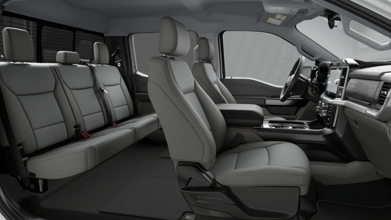 F-150 XLT is nicely equipped with Equipment Group 302A Mid (18" Painted Aluminum Wheels, 360 Degree Camera, 400W Pro Power Onboard (cab & Bed), Adaptive Cruise Control with Stop and Go, Auto-Dimming Rear-View Mirror, Body-Color Door Handles, Chrome Front and Rear Bumpers, Cloth 40/20/40 Front Seat, Dual-Zone Electronic Automatic Temperature Control, Ford Co-Pilot360 Assist 2.0, Front Parking Sensors, Heated Front Seats, Intelligent Access with Push Button Start, Power Glass Heated Sideview Mirrors, Power-Sliding Rear Window, Radio: AM/FM Stereo with SiriusXM 360L, Remote Start System with Remote Tailgate Release, SYNC 4 with Enhanced Voice Recognition, Towing Technology, and Wrapped Steering Wheel), Ford Connectivity Package (1-Year Included), Internet access capable: 5G Modem - Ford Connectivity Package, XLT Chrome Appearance Package, 4WD, 3.31 Axle Ratio, 4-Wheel Disc Brakes, 6 Speakers, ABS brakes, Air Conditioning, Alloy wheels, AM/FM radio: SiriusXM with 360L, Auto High-beam Headlights, Brake assist, Bumpers: body-color, Compass, Delay-off headlights, Driver door bin, Driver vanity mirror, Dual front impact airbags, Dual front side impact airbags, Electronic Stability Control, Emergency communication system: SYNC 4 911 Assist, Front anti-roll bar, Front Center Armrest, Front fog lights, Front reading lights, Front wheel independent suspension, Fully automatic headlights, Heated door mirrors, Illuminated entry, Low tire pressure warning, Occupant sensing airbag, Outside temperature display, Overhead airbag, Overhead console, Panic alarm, Passenger door bin, Passenger vanity mirror, Power door mirrors, Power steering, Power windows, Radio data system, Rear reading lights, Rear step bumper, Rear window defroster, Remote keyless entry, Security system, Speed control, Split folding rear seat, Steering wheel mounted audio controls, Tachometer, Telescoping steering wheel, Tilt steering wheel, Traction control, Trip computer, and Variably intermittent wipers.