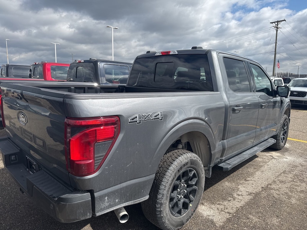 F-150 XLT is nicely equipped with Equipment Group 302A Mid (18" Painted Aluminum Wheels, 3.55 Axle Ratio, 360 Degree Camera, Auto-Dimming Rear-View Mirror, Body-Color Door Handles, Cloth 40/20/40 Front Seat, Dual-Zone Electronic Automatic Temperature Control, Ford Co-Pilot360 Assist 2.0, Front Parking Sensors, Heated Front Seats, Power Glass Heated Sideview Mirrors, Power-Sliding Rear Window, Towing Technology, and Wrapped Steering Wheel), Ford Connectivity Package (1-Year Included), GVWR: 6,650 lbs Payload Package, Internet access capable: 5G Modem - Ford Connectivity Package, XLT Black Appearance Package (6" Black Running Boards, Black Exterior Badging, Black Grille, Dark Interior Appliques, Gray Box Side Decal, Unique Sport Cloth 40/Console/40 Front-Seats, and Wheels: 18" Gloss Black), 4WD, 4-Wheel Disc Brakes, 6 Speakers, ABS brakes, Air Conditioning, Alloy wheels, AM/FM radio: SiriusXM with 360L, Auto High-beam Headlights, Black Platform Running Boards, Brake assist, Bumpers: body-color, Compass, Delay-off headlights, Driver door bin, Driver vanity mirror, Dual front impact airbags, Dual front side impact airbags, Electronic Stability Control, Emergency communication system: SYNC 4 911 Assist, Front anti-roll bar, Front Center Armrest, Front fog lights, Front reading lights, Front wheel independent suspension, Fully automatic headlights, Heated door mirrors, Illuminated entry, Low tire pressure warning, Occupant sensing airbag, Outside temperature display, Overhead airbag, Overhead console, Panic alarm, Passenger door bin, Passenger vanity mirror, Power door mirrors, Power steering, Power windows, Radio data system, Rear reading lights, Rear step bumper, Rear window defroster, Remote keyless entry, Security system, Speed control, Split folding rear seat, Steering wheel mounted audio controls, Tachometer, Telescoping steering wheel, Tilt steering wheel, Traction control, Trip computer, and Variably intermittent wipers. See dealer for details. Price may include Ford Employee discount. Price does not include licensing costs, registration fees, taxes and dealer doc fee of $280, which are to be paid by the consumer.$2500 - Retail Customer Cash. Exp. 04/30/2026