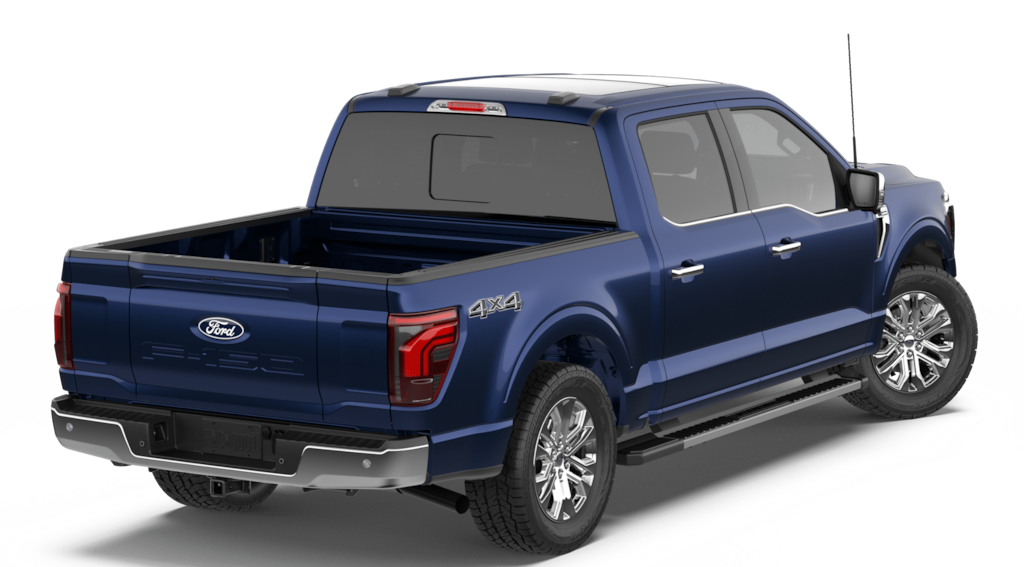 F-150 Lariat is nicely equipped with Bed Utility Package (4 Pickup Box Tie-Down Plates, Bed Storage Boxes, LED Box Lighting, and Tailgate Step with Work Surface), Equipment Group 502A High (2nd Row Heated Seats, 3.31 Axle Ratio, Ambient Lighting - Ice Blue Color Only, Illuminated Driver and Passenger Visors, Power-Adjustable Pedals with Memory, Power-Sliding Rear Window, Radio: B&O Unleashed Sound System by Bang & Olufsen, and Wheels: 20" Chrome-Like PVD), Ford Connectivity Package (1-Year Included), Internet access capable: 5G Modem - Ford Connectivity Package, Mobile Office Package (Console Worksurface, Partitioned Lockable Rear Storage, and Wireless Charging), 4WD, 4-Wheel Disc Brakes, 8 Speakers, ABS brakes, Air Conditioning, Alloy wheels, AM/FM radio: SiriusXM with 360L, Auto High-beam Headlights, Auto-dimming door mirrors, Auto-dimming Rear-View mirror, Automatic temperature control, Brake assist, Bumpers: chrome, Chrome wheels, Compass, Delay-off headlights, Driver door bin, Driver vanity mirror, Driver's Side SecuriCode Keyless-Entry Keypad, Dual front impact airbags, Dual front side impact airbags, Electronic Stability Control, Emergency communication system: SYNC 4 911 Assist, Front anti-roll bar, Front Bucket Seats, Front Center Armrest, Front dual zone A/C, Front fog lights, Front reading lights, Front wheel independent suspension, Fully automatic headlights, Garage door transmitter, Heated door mirrors, Heated front seats, Heated steering wheel, Illuminated entry, Illuminated Ford Logo Badge, Low tire pressure warning, Memory seat, Navigation system: Connected Navigation, Occupant sensing airbag, Outside temperature display, Overhead airbag, Overhead console, Panic alarm, Passenger door bin, Passenger vanity mirror, Power door mirrors, Power driver seat, Power passenger seat, Power steering, Power windows, Radio data system, Radio: B&O Sound System by Bang and Olufsen, Rain sensing wipers, Rear reading lights, Rear seat center armrest, Rear step bumper, Rear window defroster, Remote keyless entry, Security system, Speed control, Split folding rear seat, Steering wheel mounted audio controls, SYNC 4 with Enhanced Voice Recognition, Tachometer, Telescoping steering wheel, Tilt steering wheel, Traction control, Trip computer, Turn signal indicator mirrors, Twin Panel Moonroof, Variably intermittent wipers, Ventilated front seats, and Wheels: 18" Chrome-Like PVD.