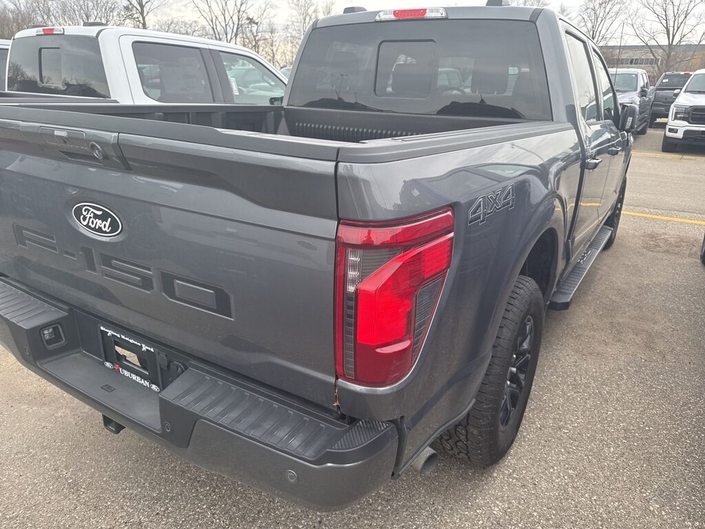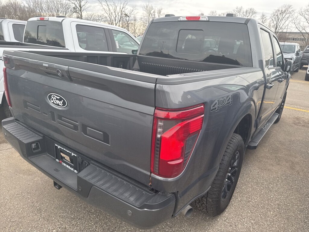 F-150 XLT is nicely equipped with Bed Utility Package (4 Pickup Box Tie-Down Plates, Bed Storage Boxes, and LED Box Lighting), Equipment Group 302A Mid (18" Painted Aluminum Wheels, 3.55 Axle Ratio, 360 Degree Camera, Auto-Dimming Rear-View Mirror, Body-Color Door Handles, Cloth 40/20/40 Front Seat, Dual-Zone Electronic Automatic Temperature Control, Ford Co-Pilot360 Assist 2.0, Front Parking Sensors, Heated Front Seats, Power Glass Heated Sideview Mirrors, Power-Sliding Rear Window, Towing Technology, and Wrapped Steering Wheel), Ford Connectivity Package (1-Year Included), GVWR: 6,650 lbs Payload Package, Internet access capable: 5G Modem - Ford Connectivity Package, XLT Black Appearance Package (6" Black Running Boards, Black Exterior Badging, Black Grille, Dark Interior Appliques, Gray Box Side Decal, Unique Sport Cloth 40/Console/40 Front-Seats, and Wheels: 18" Gloss Black), 4WD, 4-Wheel Disc Brakes, 6 Speakers, ABS brakes, Air Conditioning, Alloy wheels, AM/FM radio: SiriusXM with 360L, Auto High-beam Headlights, Black Platform Running Boards, Brake assist, Bumpers: body-color, Compass, Delay-off headlights, Driver door bin, Driver vanity mirror, Dual front impact airbags, Dual front side impact airbags, Electronic Stability Control, Emergency communication system: SYNC 4 911 Assist, Front anti-roll bar, Front Center Armrest, Front fog lights, Front reading lights, Front wheel independent suspension, Fully automatic headlights, Heated door mirrors, Illuminated entry, Low tire pressure warning, Occupant sensing airbag, Outside temperature display, Overhead airbag, Overhead console, Panic alarm, Passenger door bin, Passenger vanity mirror, Power door mirrors, Power steering, Power windows, Radio data system, Rear reading lights, Rear step bumper, Rear window defroster, Remote keyless entry, Security system, Speed control, Split folding rear seat, Steering wheel mounted audio controls, Tachometer, Telescoping steering wheel, Tilt steering wheel, Traction control, Trip computer, and Variably intermittent wipers. See dealer for details. Price may include Ford Employee discount. Price does not include licensing costs, registration fees, taxes and dealer doc fee of $280, which are to be paid by the consumer.$2500 - Retail Customer Cash. Exp. 04/30/2026