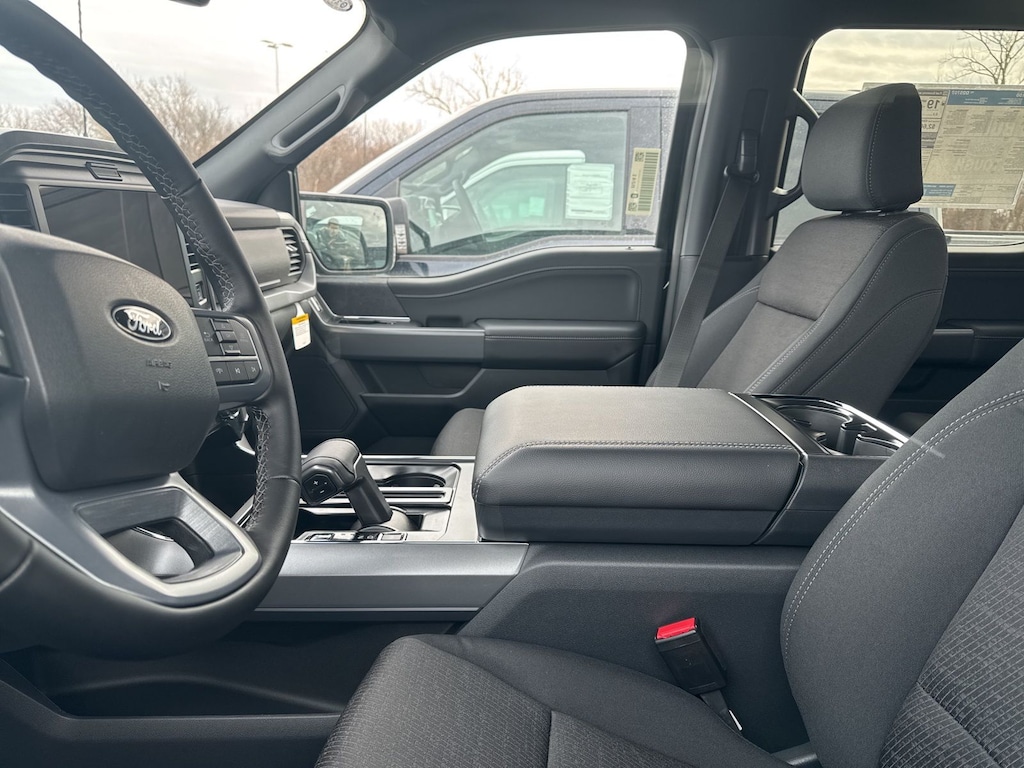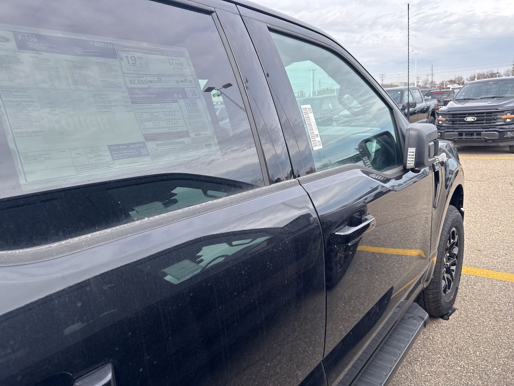 F-150 XLT is nicely equipped with Bed Utility Package (4 Pickup Box Tie-Down Plates, Bed Storage Boxes, LED Box Lighting, and Tailgate Step with Work Surface), Equipment Group 302A Mid (18" Painted Aluminum Wheels, 360 Degree Camera, 400W Pro Power Onboard (cab & Bed), Adaptive Cruise Control with Stop and Go, Auto-Dimming Rear-View Mirror, Body-Color Door Handles, Chrome Front and Rear Bumpers, Cloth 40/20/40 Front Seat, Dual-Zone Electronic Automatic Temperature Control, Ford Co-Pilot360 Assist 2.0, Front Parking Sensors, Heated Front Seats, Intelligent Access with Push Button Start, Power Glass Heated Sideview Mirrors, Power-Sliding Rear Window, Radio: AM/FM Stereo with SiriusXM 360L, Remote Start System with Remote Tailgate Release, SYNC 4 with Enhanced Voice Recognition, Towing Technology, and Wrapped Steering Wheel), Ford Connectivity Package (1-Year Included), Internet access capable: 5G Modem - Ford Connectivity Package, Tow/Haul Package, XLT Black Appearance Package, 4WD, 4-Wheel Disc Brakes, 6 Speakers, ABS brakes, Air Conditioning, Alloy wheels, AM/FM radio: SiriusXM with 360L, Auto High-beam Headlights, Brake assist, Bumpers: body-color, Compass, Delay-off headlights, Driver door bin, Driver vanity mirror, Dual front impact airbags, Dual front side impact airbags, Electronic Stability Control, Emergency communication system: SYNC 4 911 Assist, Front anti-roll bar, Front Center Armrest, Front fog lights, Front reading lights, Front wheel independent suspension, Fully automatic headlights, Heated door mirrors, Illuminated entry, Low tire pressure warning, Occupant sensing airbag, Outside temperature display, Overhead airbag, Overhead console, Panic alarm, Passenger door bin, Passenger vanity mirror, Power door mirrors, Power steering, Power windows, Radio data system, Rear reading lights, Rear step bumper, Rear window defroster, Remote keyless entry, Security system, Speed control, Split folding rear seat, Steering wheel mounted audio controls, Tachometer, Telescoping steering wheel, Tilt steering wheel, Traction control, Trip computer, and Variably intermittent wipers. See dealer for details. Price may include Ford Employee discount. Price does not include licensing costs, registration fees, taxes and dealer doc fee of $280, which are to be paid by the consumer.$2500 - Retail Customer Cash. Exp. 04/30/2026
