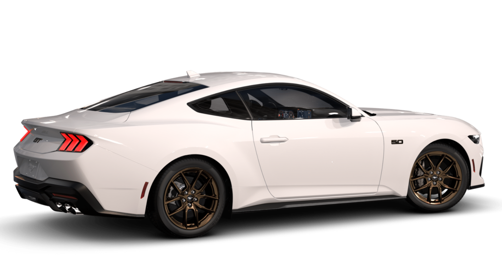 Mustang GT Premium is nicely equipped with Bronze Appearance Package, Equipment Group 401A High Package (Aluminum Foot Pedals, Driver Seat Memory w/3 Settings, and Magnesium Framed Panoramic Curved Display), Ford Co-Pilot360 Assist+ (Pre-Collision Assist w/Automatic Emergency Braking), 1st Row Carpeted Black Floor Mats, 4-Wheel Disc Brakes, ABS brakes, Active Valve Performance Exhaust, Air Conditioning, Alloy wheels, AM/FM Stereo, Auto High-beam Headlights, Automatic temperature control, Brake assist, Bumpers: body-color, Compass, Delay-off headlights, Driver door bin, Driver vanity mirror, Dual front impact airbags, Dual front side impact airbags, Electronic Stability Control, Emergency communication system: 911 Assist, Exterior Parking Camera Rear, Four wheel independent suspension, Front anti-roll bar, Front Bucket Seats, Front Center Armrest, Front dual zone A/C, Front reading lights, Fully automatic headlights, Illuminated entry, Knee airbag, Leather Shift Knob, Leather steering wheel, Low tire pressure warning, Occupant sensing airbag, Outside temperature display, Overhead airbag, Overhead console, Panic alarm, Passenger door bin, Passenger vanity mirror, Power door mirrors, Power steering, Power windows, Premium Floor Liners Front & Rear (w/Carpet Mats), Race Red Seat Belt, Radio data system, Rain sensing wipers, Rear anti-roll bar, Rear Parking Sensors, Rear window defroster, Remote keyless entry, Speed control, Speed-sensing steering, Speed-Sensitive Wipers, Split folding rear seat, Sport steering wheel, Steering wheel mounted audio controls, SYNC 4, Tachometer, Telescoping steering wheel, Tilt steering wheel, Traction control, Trip computer, Variably intermittent wipers, and Voltmeter.