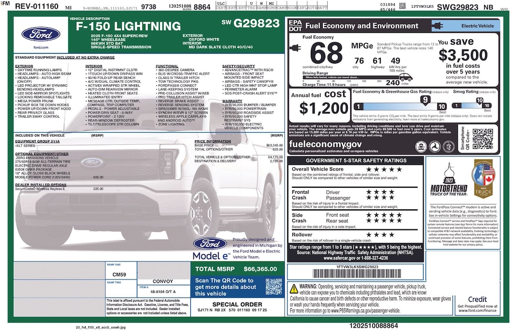 I bought my Lightning Pro at end-of-model-year pricing, which helped big time. Savings paid for the trip from Arizona to Seattle and back, with money left over. The trip from Seattle blew the 'free charge' budget that came with the truck, but the only range anxiety I experienced was when I ignored the advice delivered by GPS mapping. I never ran out of charge. I also bought a home charger, not from Ford but LectronEV, which severely drops the price per KWh versus commercial charging stations. I saved enough over two months to pay for the charger - it plugs into a 50@ dryer outlet, not a standard 110V outlet. Commercial chargers costs are comparable to pumping gas. The truck itself has plenty of 110V outlets, inside and out. In a power outage, plug appliances into the truck. When the truck gets low, drive to where there is power - which will require awareness and planning. The Bad I keep getting alerts to take the truck in for service. I took the truck in for 10,000 mile service. I can't prove they did anything, but they said they looked at tire wear. I don't recall if they claimed to have rotated the tires. A mile or so from the dealership, the Service Vehicle light came back on. Every now and again, the computer pukes itself. I can't get make GPS to work. The only thing I can do is factory reset it, which loses all GPS memory. The seats are higher than comfortable, so I picked up steps in case a passenger needs them. Much cheaper than adding running boards that might get damaged when I'm running off road. No advantage is gained driving through mud from all wheel drive (AWD). This is a problem in southeast Arizona, where we experience seasonal monsoon rains. The bonnet gets stuck, sometimes, when I put something in that the geometry doesn't like. I'm left standing at the front of the truck, banging on it or trying to find another way to make it release so I can re-jigger the contents so it works again. So far, I have been successful, but it should be a concern for owners that no (consumer) manual trunk override seems to be available. For one example, I parked too close to a tree, and a slim branch got caught in the seam. For another, a cooler somehow impeded the bonnet's travel. Distracting alerts pop up on screen. Many of the alerts are absolutely unimportant, but want to take my eyes off the road. Ford needs to add a heads-up display like I once had on a Pontiac Grand Am. It's been over a year of ownership, and indicated range after a full charge has dropped. I have no way of knowing whether this is due to the truck's software learning my driving habits, or from a diminution of real battery capacity. There is a serious lack of transparency about the Lightning. After ordering the Tesla adapter in February of last year, it recently arrived. Why would Ford NOT automatically spray in truck bed liner by default? Should be part of the manufacturing process. I masked and sprayed truck bed liner in myself. The bed is too short for 4'x8' sheets of drywall or plywood to lay flat. Conclusion All those negatives should be weighed against the positives. The truck costs about $140 per month less to keep charged than my (already sold) Xterra to keep fueled. It dusts almost any IC vehicle when the light changes to green.